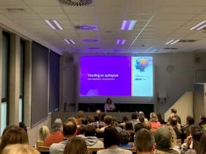 Oa. Prof Lagae en neurodiëtiste Joke Verheijen hebben de aanwezigen op de hoogte gebracht van de laatste nieuwe evoluties in de behandeling van epilepsie. Joke heeft daarbij een warm pleidooi gehouden voor het ketogeen dieet als een haalbare, lekkere en mogelijks efficiënte vorm van therapie.