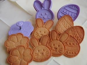 - steek koekjes uit met de verschillende paas uitdrukvormpjes.